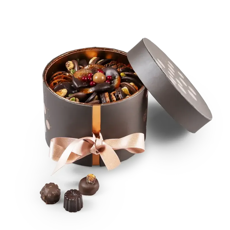 The Winter Fairytale Calendar The highlight of the Christmas Collection, CLUIZEL expresses its confectionery and chocolate-making expertise in 24 chocolate bonbons. Each unique signature bonbon brings out the power of chocolate's aromatic notes. 99% cocoa ganache, delicate pralines, orange or raspberry marmalade: each box contains delicacies with balanced flavours and textures for a real journey of the senses, made with Noble Ingredients® and no flavourings. In a magical valley, under a golden sky, rises a tower with ribboned staircases. To celebrate each day, its luminous windows reveal secret, sweet treasures. A perfect balance of dark and milk, this Advent calendar is a delicate marvel, a festive jewel box, a chocolate journey. Creamy ganaches with refined accents, crunchy pralines, tender to the bite. Each bite reveals the art of the Manufacture, that of exceptional chocolates, the fruit of pure nature. Under the snow-covered roofs of this magical landscape, every day is a celebration, a magical surprise. The flavours follow one another, sweet and savoury, for a countdown to precious moments. Let the magic of Christmas blossom in this enchanted village, where flavour reigns supreme.