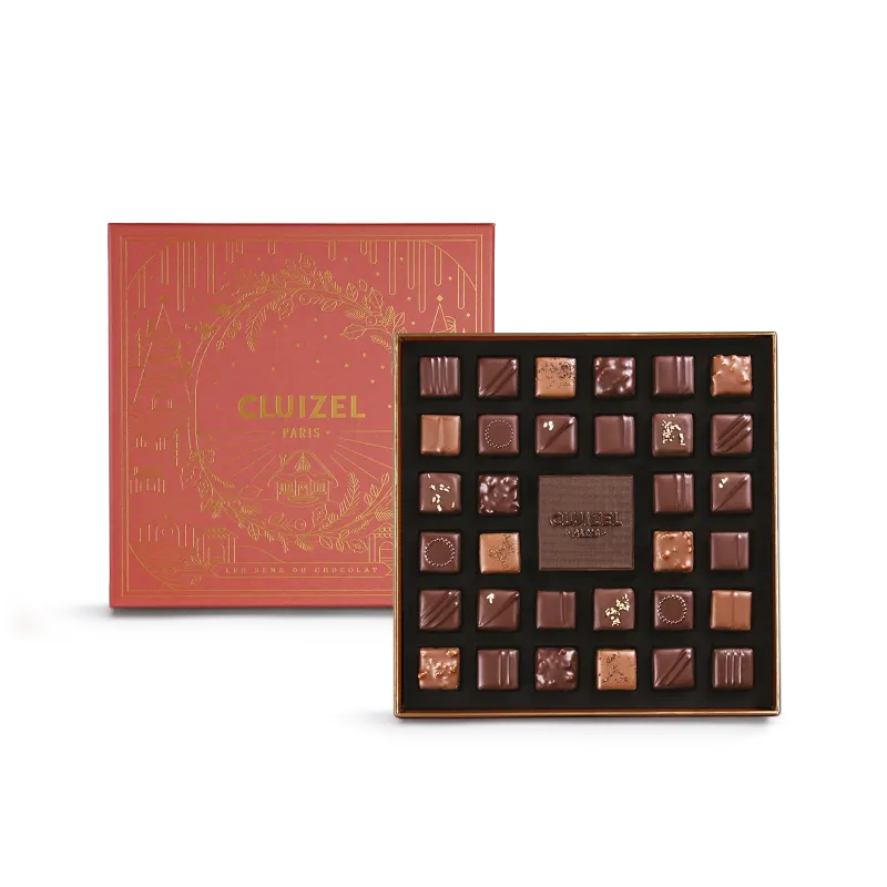 Discover elegance and finesse in our treasure chest of delicacies. An assortment of dark and milk chocolates rich in experiences. The senses are awakened by ganache fillings, and are finally enchanted by a bar of organic Grand Cru Dark Chocolate. This daring blend, made from Plantation cocoa, is for connoisseurs. Enjoy the many flavours of our very special box.
