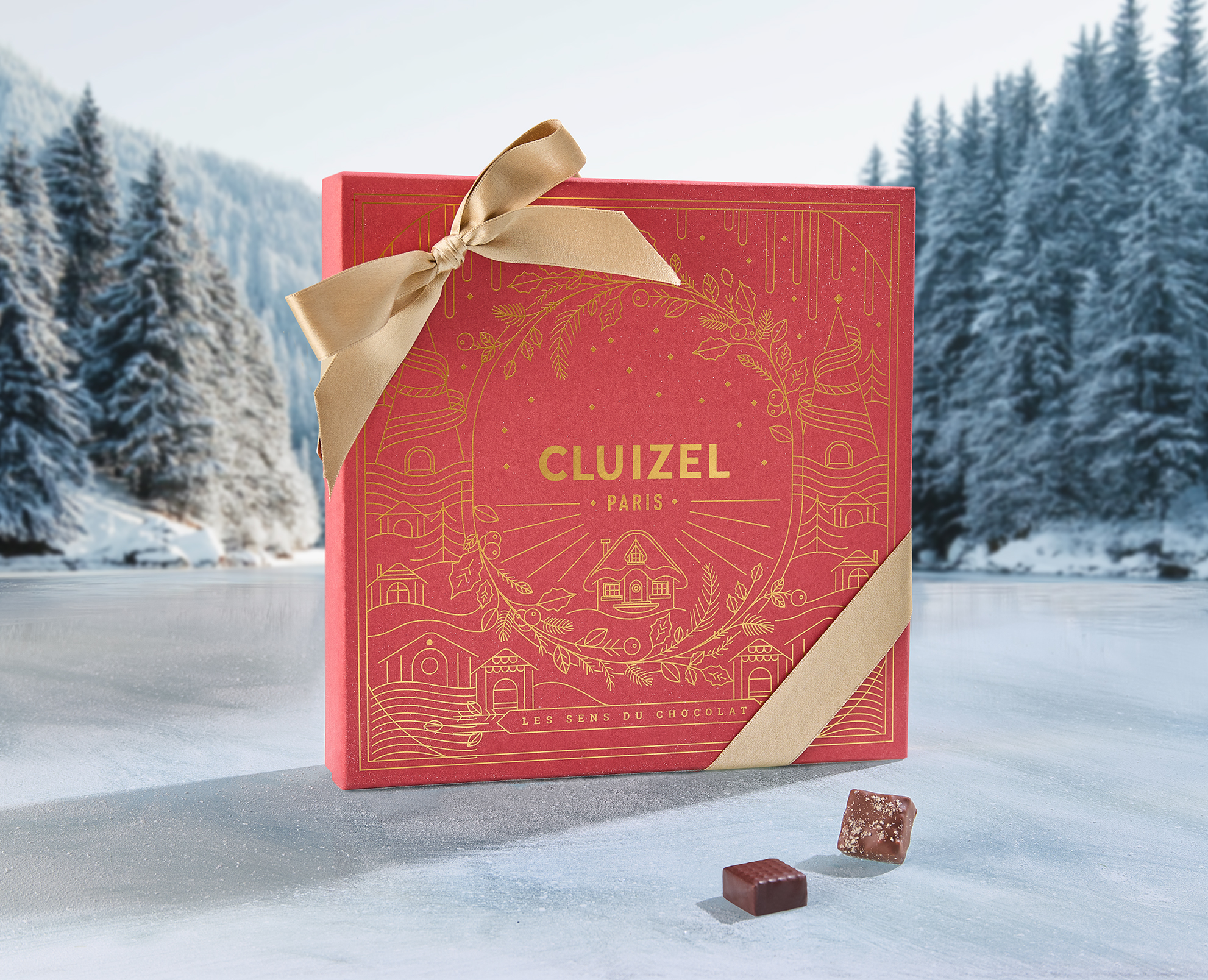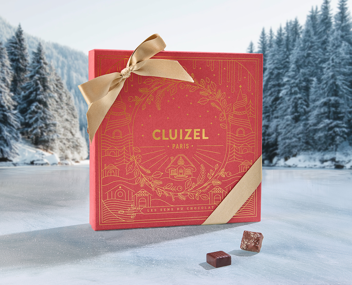 Pour Noël 2025, l’orfèvre en chocolat a imaginé un coffret éphémère, orné d’une illustration féérique et illuminé de motifs dorés festifs. Cette pièce unique accueille jusqu’à 32 bonbons Les Exclusifs,Un coffret de Noël à offrir ou à s’offrir, disponible en exclusivité et en édition limitée. Des chocolats aux goûts exceptionnels, conçus à partir d’ingrédients bio de haute qualité, c’est la promesse que renferme ce coffret. Composé de trente-deux bonbons d'exception, savoureux et singuliers, cet assortiment fera danser vos papilles. Grâce à un savoir-faire unique et maîtrisé, nous vous offrons le raffinement allié à l’intensité dans un coffret élégant. Chocolat Grand Cru Bio San Martín du Pérou et Guayas d'Equateur, café Grand Cru Chiapas du Mexique, beurre d'Isigny Sainte-Mère, sel de Guérande IGP, miel des forêts de Lorraine, noisettes d'Italie, amandes d'Espagne ou encore vanille Bourbon de Madagascar : 32 délicieux bonbons aux coques fines sans aucun arôme ou conservateur. Pour ne manquer aucune des notes subtiles de ces créations, accompagnez votre dégustation d’une expérience multisensorielle imaginée et créée par la Manufacture : lessensduchocolat.com. Laissez-vous guider pas à pas et éveillez vos sens aux notes subtiles des créations CLUIZEL. Afin de préserver les goûts intenses de nos bonbons, ce coffret haut de gamme n’est livrable qu’en France métropolitaine. A consommer dans les 15 jours à compter de la date d’envoi (DLUO de 15 jours).
